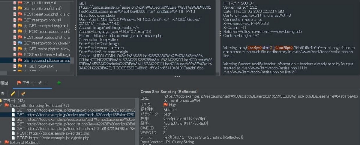 ZAPでの検出例。