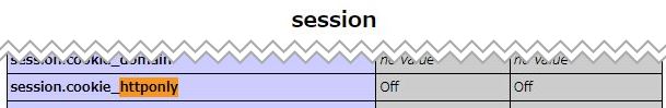 session.use_cookies=On session.use_only_cookies=Off session.use_trans_sid=On session.cookie_httponly=On ← 追記